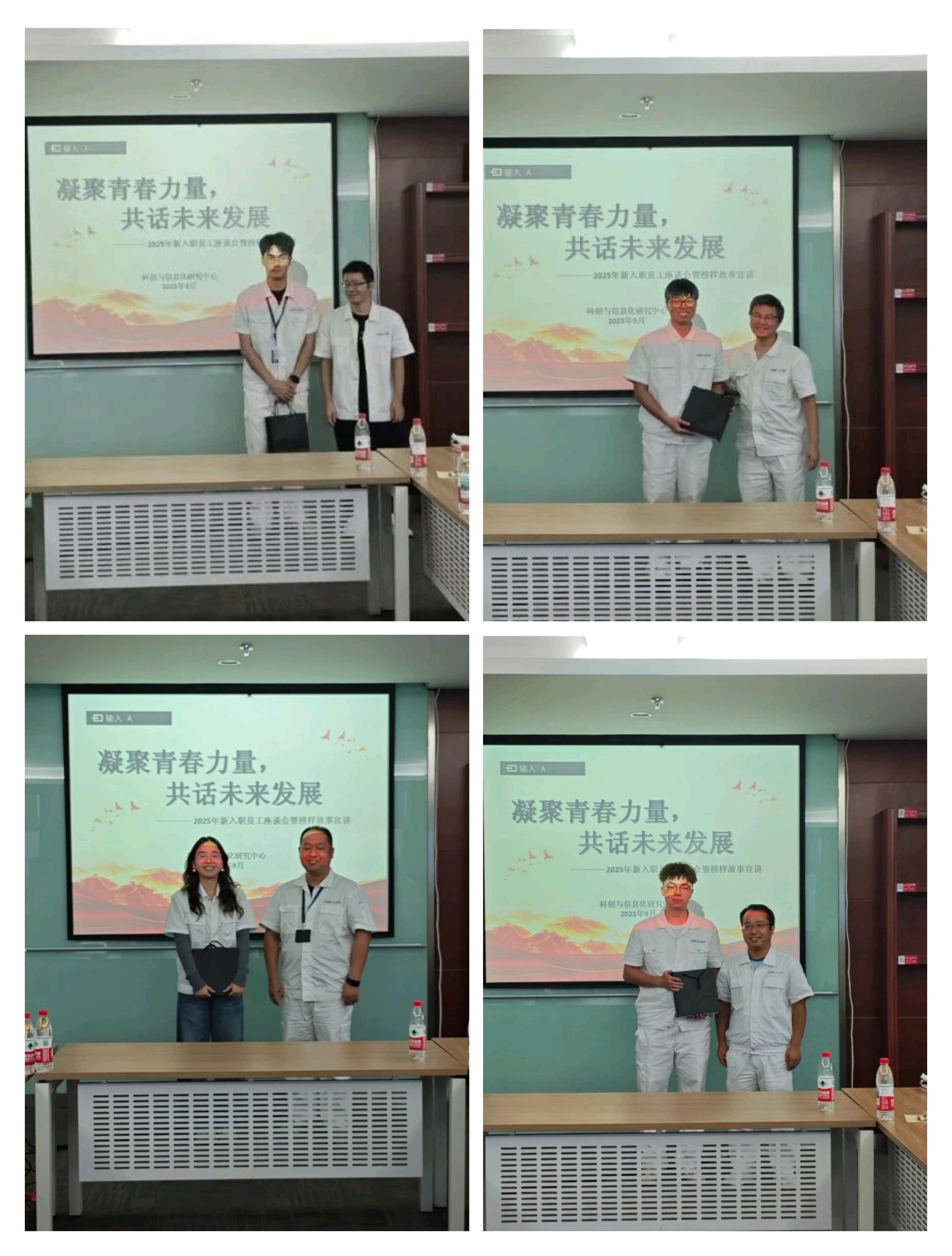 宣講環(huán)節(jié),科創(chuàng)與信息化研究中心負(fù)責(zé)人首先宣講“入職第一課”:“三個(gè)轉(zhuǎn)變”,一是身份上要從學(xué)生到企業(yè)員工的轉(zhuǎn)變;二是心態(tài)上要積極調(diào)整,避免焦慮,多向模范、標(biāo)兵學(xué)習(xí);三是工作思路的轉(zhuǎn)變,珍惜每一次機(jī)會(huì),堅(jiān)持“一次就做對(duì),每次都做好”,以實(shí)際行動(dòng)贏得團(tuán)隊(duì)信任。“三看”:看同齡人如何適應(yīng)、看導(dǎo)師與領(lǐng)導(dǎo)如何成長、看自身不足與進(jìn)步。要持續(xù)加強(qiáng)學(xué)習(xí)與領(lǐng)悟,培養(yǎng)系統(tǒng)思維、換位思考和多動(dòng)筆總結(jié)的習(xí)慣。實(shí)習(xí)期結(jié)束后,新員工要參與答辯,分享實(shí)習(xí)期自己最滿意的事、對(duì)科室或中心的建議,制定短期和長期工作計(jì)劃,還要參與一項(xiàng)運(yùn)動(dòng)豐富業(yè)余生活。